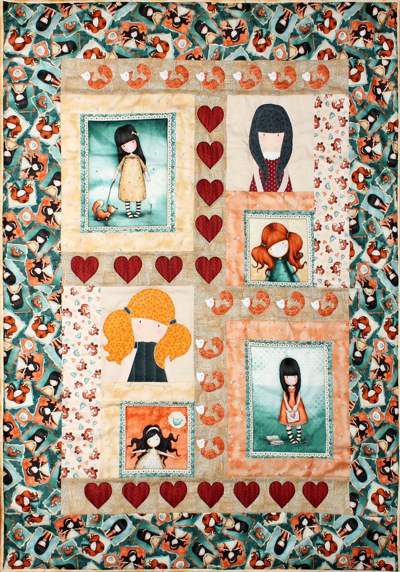 Vi piacerebbe realizzarlo? Cliccando cartamodello-coperta-gorjuss-heartfelt potete scaricare gratuitamente il cartamodello, con tutte le dimensioni dei singoli pezzi ed i disegni dei particolari da fare in applichè.