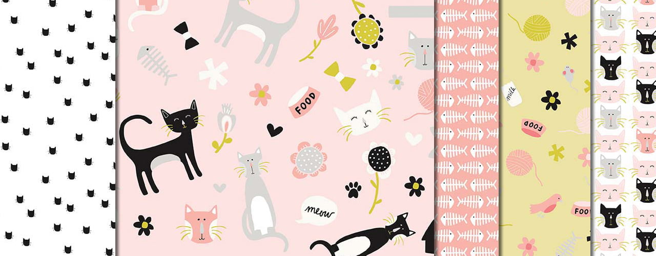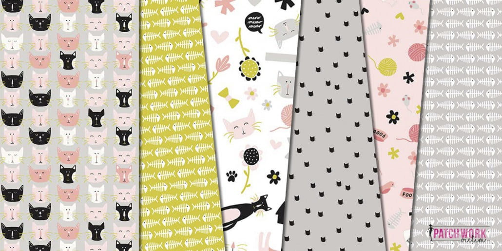 Le stoffe coordinate che completano la collezione riprendono i singoli soggetti: musetti in fila, silohuette delle testoline, lische, e una fantasia composta da uccellini, topolini, ciotola del cibo, fiocchetti e gomitoli… tutte cose che gli esperti di gatti non faticheranno a classificare alla voce “passatempi”.