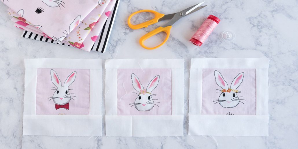 3. Le misure date sono in cm; il margine di cucitura è di 6 mm. Misure per il taglio: il quadrato centrale dev’essere di cm 11,25, la striscia per i lati esterni e superiore di 3,75 cm, la striscia per il lato inferiore (che darà la classica forma “polaroid” al piccolo blocco) di 6,25 cm.