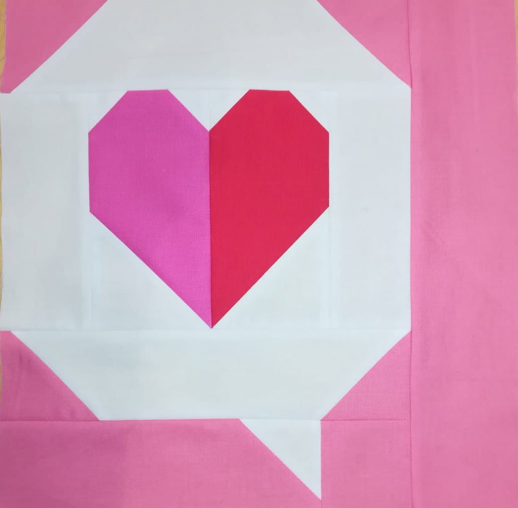 Cosa si fa: si cuce insieme questo blocco (misure 25*30cm circa). Potrai scegliere la versione base, quella che vedi qui sotto, oppure quella con il cuore patchwork che trovi nella foto successiva. In ogni caso riceverai entrambi gli schemi!