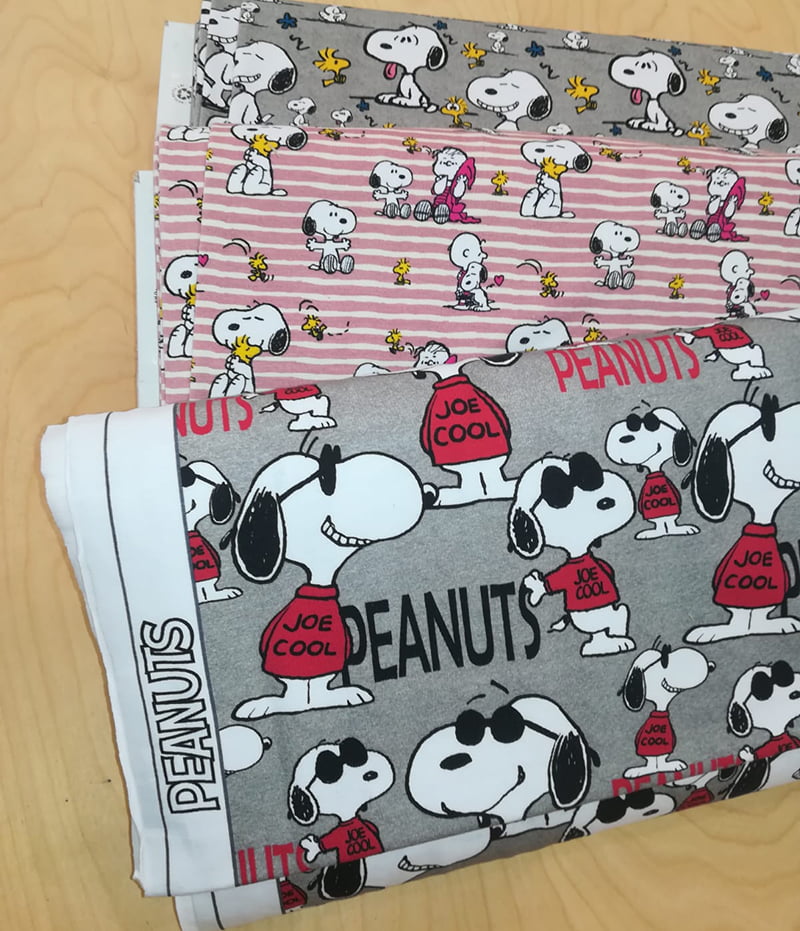 Tessuti in jersey con Snoopy ed i Peanuts
