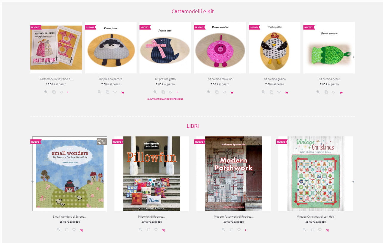 lo trovi alla fine dei blocchi collezioni: puoi scorrere i prodotti lateralmente e scoprire i titoli che più solleticano la tua creatività.