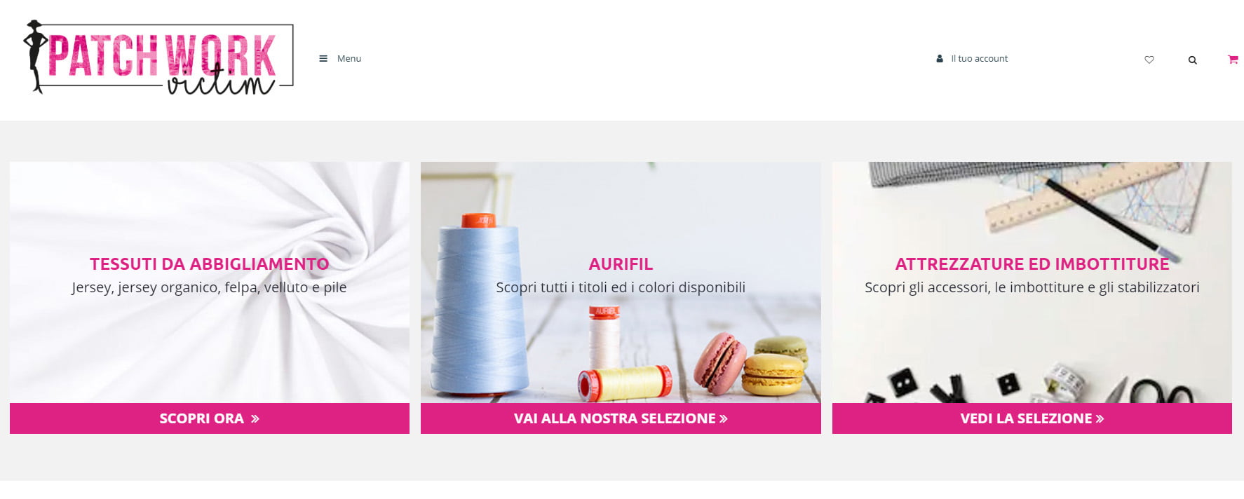 Non sono neanche 4 anni che il nostro sito internet ha visto la “luce” del web, ma già sono cambiate tante cose, a partire dal numero di prodotti e di fantasie che abbiamo a disposizione; ad un certo punto la grande varietà di collezioni pareva quasi essere un ostacolo, anzichè un punto a favore, per le nostre clienti. Così ci siamo rimessi all’opera, dal punto di vista grafico ed informatico, per ridisegnare la nostra creatura (in fondo, è un po’ il nostro terzo figlio): dopo un lungo lavoro, nei giorni scorsi ha debuttato il nuovo Patchworkvictim.