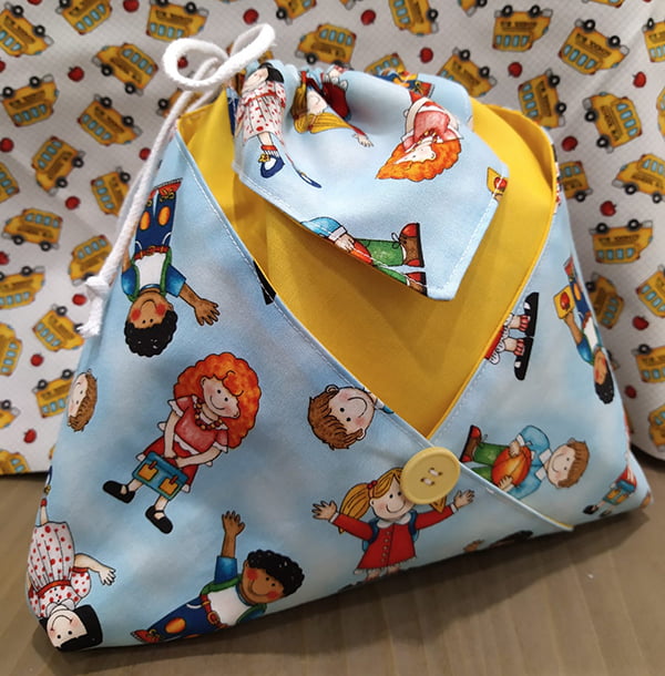 Si realizza con due tessuti e grazie a poche cuciture, alcune pieghe ed un pizzico di magia si ottiene un sacchetto bello e comodo.