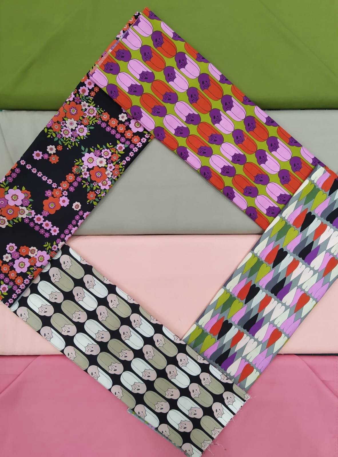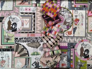 Nel selezionare i tessuti ho creato due palette di colori, una più tenue, l’altra più forte e decisa, riconoscerle e facile, ma se hai dubbi sugli abbinamenti non esitare a chiedermi consiglio.