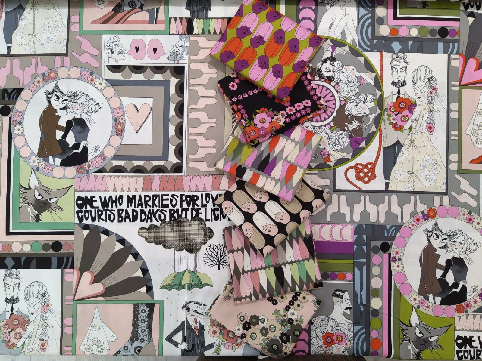 Quello che scopriamo attraverso la collezione appena arrivata è che sono innamorati: le nuove fantasie ci regalano scatti inediti del matrimonio dei capofamiglia (sapete che c’è pure un dettaglio “hard” che mi ha fatto cancellare un post da Facebook?) e fanno chiacchierare d’amore tutti i membri della famiglia, mentre il fidato ed austero maggiordomo offre drink a base di pozioni d’amore di uno spettacolare colore verde. L’unico che pare immune all’innamoramento generale ed osserva tutti con scetticismo pare essere il gatto di famiglia, che da nero è diventato verde.
