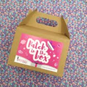La Patch in the Box è una scatola a sorpresa, creata da noi, che si acquista – letteralmente – “a scatola chiusa”: contiene dei tessuti, diversi per stile, collezione e formato, un regalino cucito dal nostro laboratorio, un accessorio (spesso attinente al mondo del cucito, ma a volte sconfinano nella cancelleria o nella cucina) ed una ricetta. Viene realizzata in edizione limitata ogni due mesi circa ed una volta esaurita non si può far altro che attendere l’uscita successiva; le scatole di ciascuna edizione sono tutte uguali, o con minime differenze, mentre ogni uscita è completamente diversa da quelle precedenti.