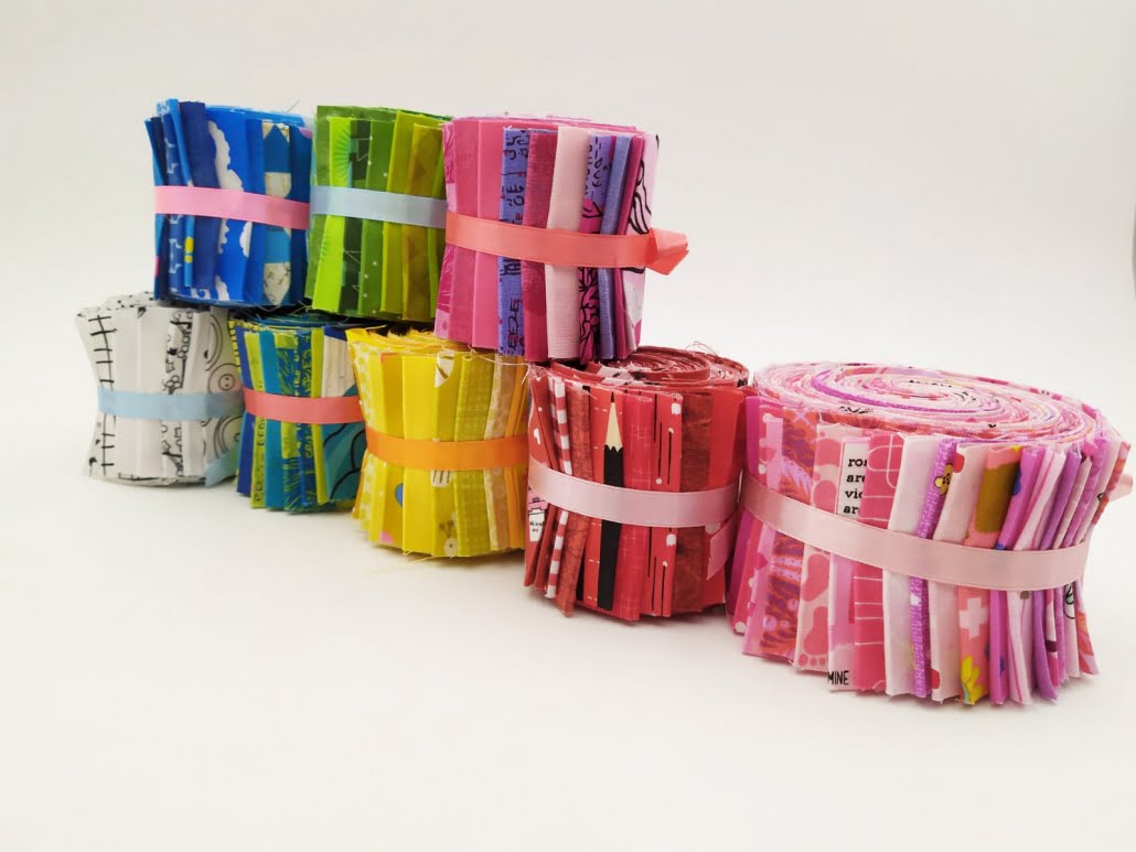 Nelle ultime settimane siamo letteralmente impazzite per i progetti a strisce: dalle tovagliette di cui abbiamo pubblicato i tutorial ai cuori che abbiamo condivisi sul gruppo facebook Patchwork Village, vi abbiamo contagiato con il nostro amore per i jelly roll. Piccoli e colorati, comodi da usare perchè già della “taglia” giusta per molti progetti veloci e divertenti, ne abbiamo realizzati in molte tonalità diverse.