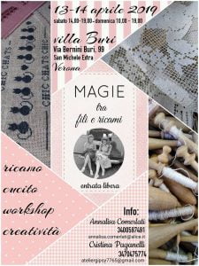 Abbiamo archiviato la fiera di Bergamo con affetto e riconoscenza per le molte amiche che ci sono venute a trovare e che hanno apprezzato il nostro stand e la nostra offerta; speriamo di rivedervi alla prossima edizione, ma nel frattempo i modi ed i canali per seguirci sono tanti e tutti a vostra disposizione. Ora ci stiamo preparando agli altri appuntamenti di questa calda primavera: uno dei più interessanti è sicuramente “Magie fra fili e ricami“, una piccola fiera che si terrà nella splendida cornice di Villa Buri a Verona il 13 e 14 aprile. Incentrata sul mondo del ricamo sarà per me una sorta di ritorno alle mie origini di punto crocettista e, me lo auguro, l’occasione per rivedere tante “amiche di crocetta”.
